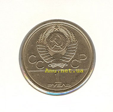 Тип V. В верхней части поля по центру герб СССР, обрамленный линейным ободком, образующим крупный сегмент. По бокам от герба слева и справа по две буквы из надписи "СССР", расположенные со сдвигом по высоте. Нижняя часть поля также обрамлена линейным ободком, образующим малый сегмент. Внутри него номинал "1 РУБЛЬ", написанный в две горизонтальные строки: в верхней строке цифра "1", в нижней - слово "РУБЛЬ".