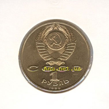 Примечание: Для чеканки монеты применялся вариант шт.VI.7(90), аналогичный шт.VI.7(87), шт.VI.7(88) и шт.VI.7(89), но с датой "1990": параллели и меридианы над поверхностями океанов на земном шаре в гербе выпуклые. Гребенка верхних остей справа от звезды имеет уступ. Цифры даты и герб приближены к внешнему ободку монеты.