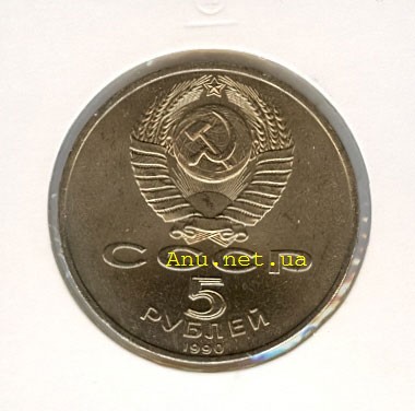 Для чеканки монеты использовался вариант шт.I(5 р.).2(90), выполненный под диаметр монеты 35 мм, с датой "1990".