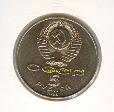 Для чеканки монеты использовался вариант шт.I(5 р.).2(88), выполненный под диаметр монеты 35 мм, с датой "1988".