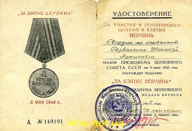 Можно выделить следующие варианты удостоверений к медали "За взятие Берлина".