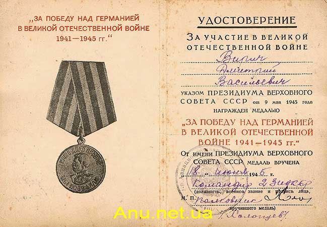 Медалью “За победу над Германией в Великой Отечественной войне 1941-1945 гг.” награждались: