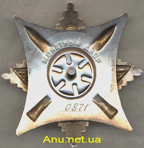 На всех степенях ордена клеймо “МОНЕТНЫЙ ДВОР” исполнено выпуклыми буквами и расположено на реверсе подлежащей эмалевой звезды, выше нарезного штифта, по дуге (от 10 до 2 часов по циферблату, по часовой стрелке, вдоль верхней границы округлой скрепляющей гайки). Номер ордена у всех степеней располагался горизонтально на реверсе подлежащей эмалевой звезды, ниже нарезного штифта (на 6 часов по циферблату). Номер наносился вращающимся инструментом. Под номером проходит тонкая выпуклая риска.