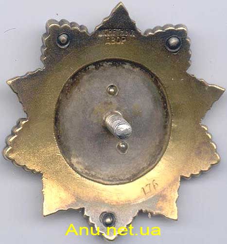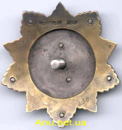 - Вариант 2. Булавка на реверсе отсутствует. Минимальный известный номер ордена – 91, максимальный – 354.
