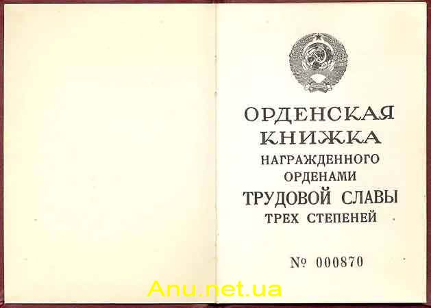 Орденская книжка полного кавалера ордена Трудовой Славы, Разновидность 1