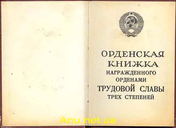 Полным кавалерам ордена Трудовой Славы вручался особый документ - орденская книжка награжденного орденами Трудовой Славы трех степеней. Высота документа - 10,8 см, ширина - 7,6 см. Обложка документа бордового цвета. Можно выделить следующие разновидности подобных орденских книжек.